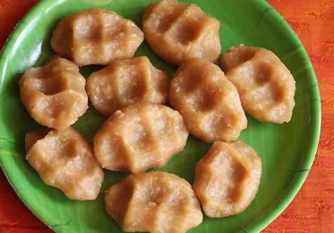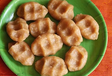 Soft, hand-shaped steamed rice dumplings sweetened with jaggery and flavored with grated coconut and cardamom—this traditional Tanjavur delicacy melts in your mouth and brings back memories of festive mornings.